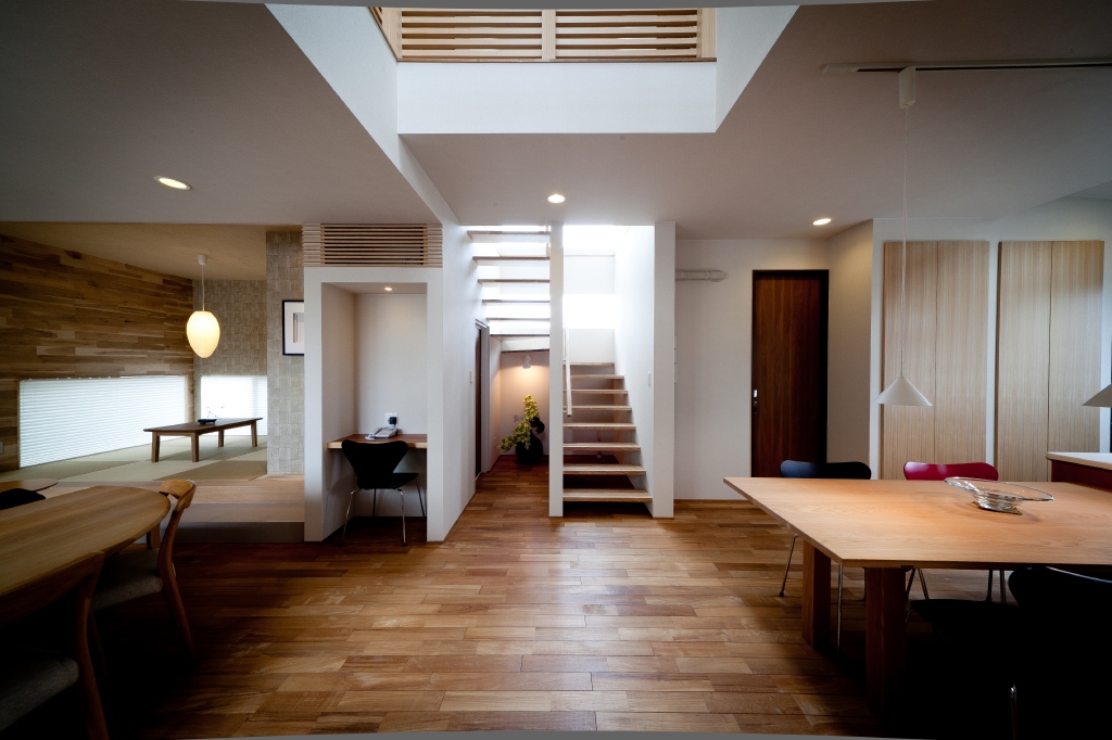 中庭・・・中庭を家の中央に配置したのでどこにいても明るく、それでいてカーテン不要の暮らしも実現できました。