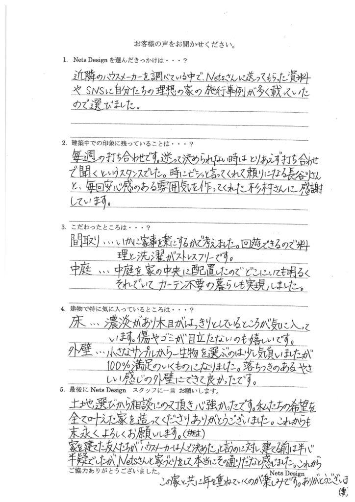 家を建てた友人が「ハウスメーカーは人で決めた」というのに対し建てる前は半信半疑でしたが、Netsさんと家づくりをして本当にその通りだなと感じました。